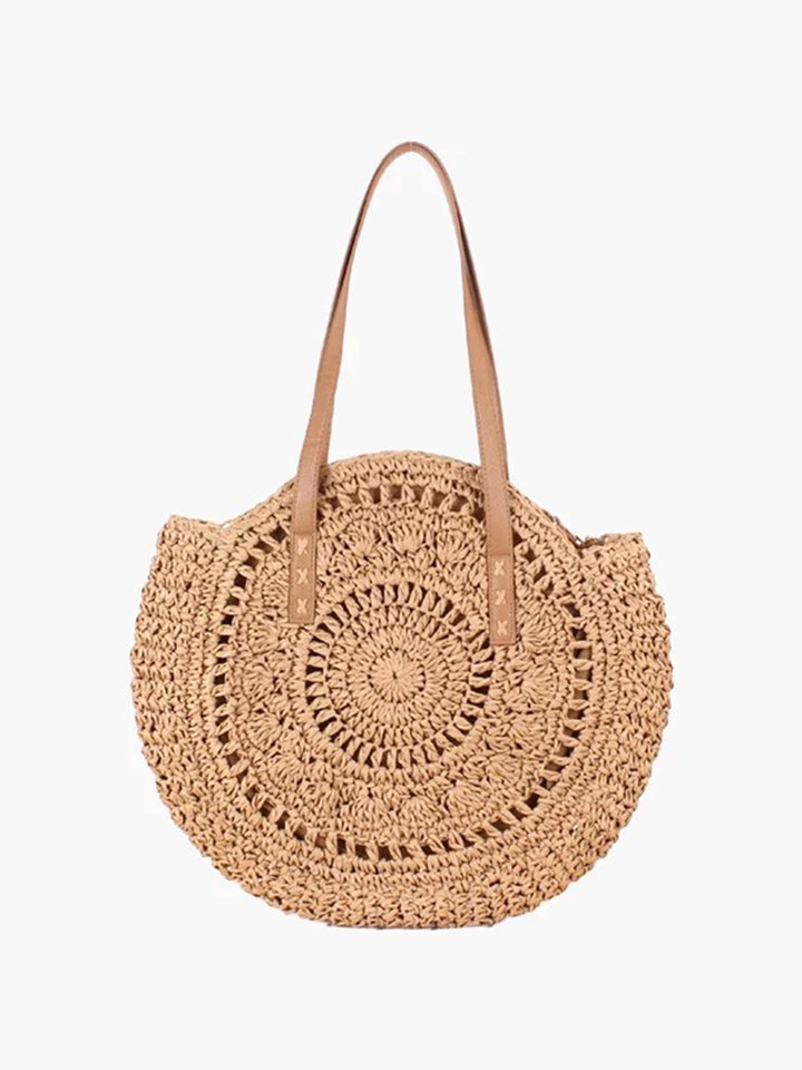 Tiğ İşi Yuvarlak Hasır Tote Çanta
