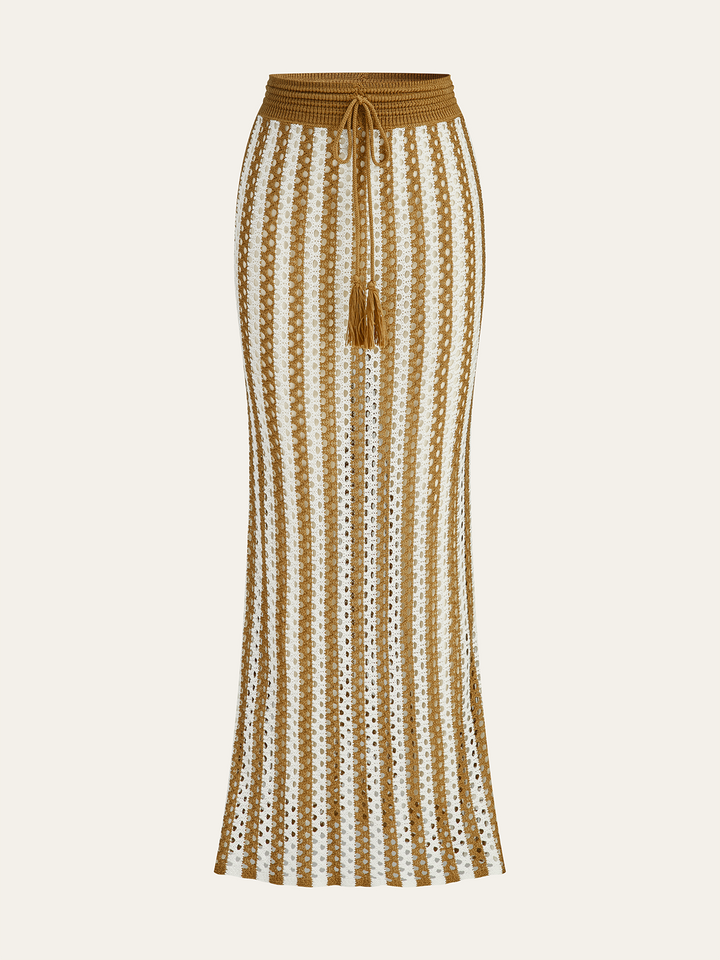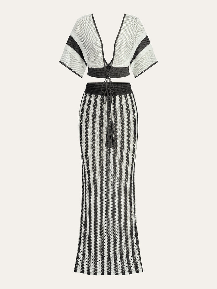 Püsküllü Bağcıklı Tığ İşi Çizgili Etek Takımı