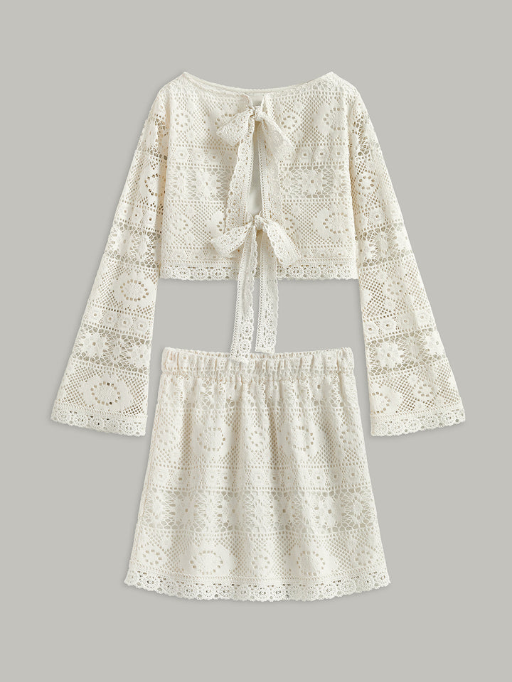 Tiğ İşi Bağlamalı Yarı Şeffaf Etek Takımı