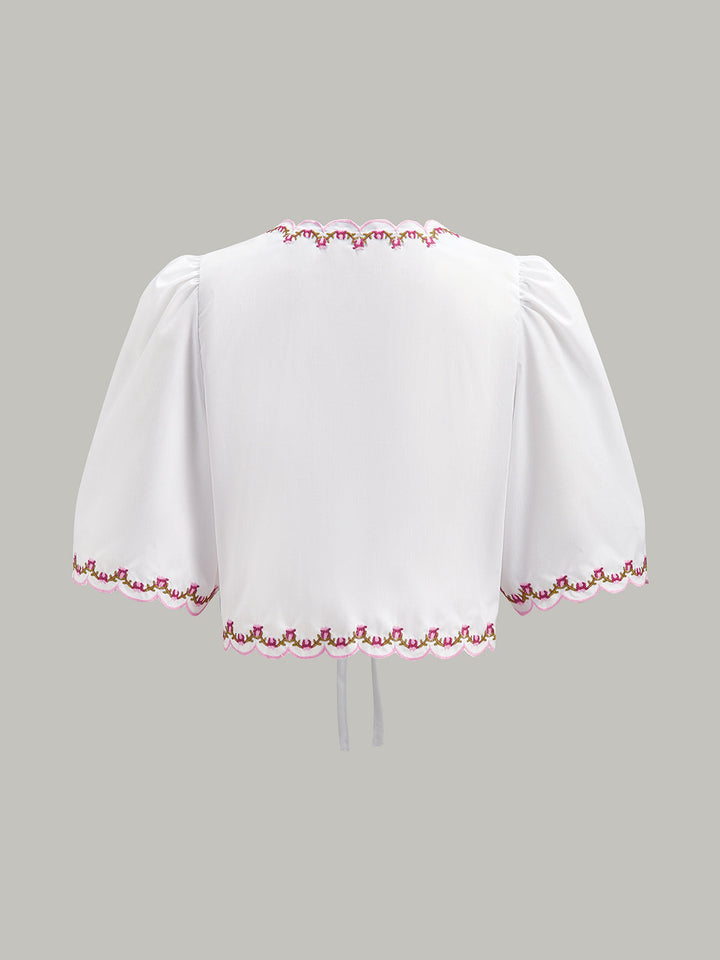 İşlemeli Taraklı Puf Kollu Fiyonklu Bluz