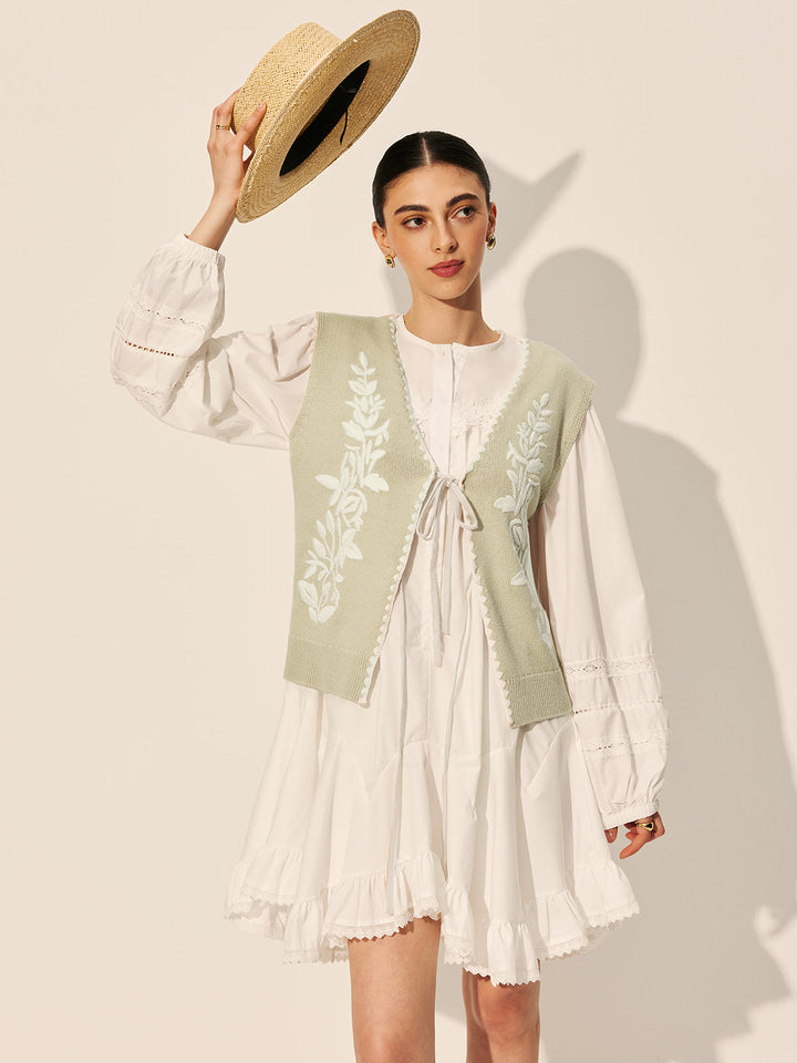 Nakışlı Fiyonklu Çiçekli Kazak Yelek