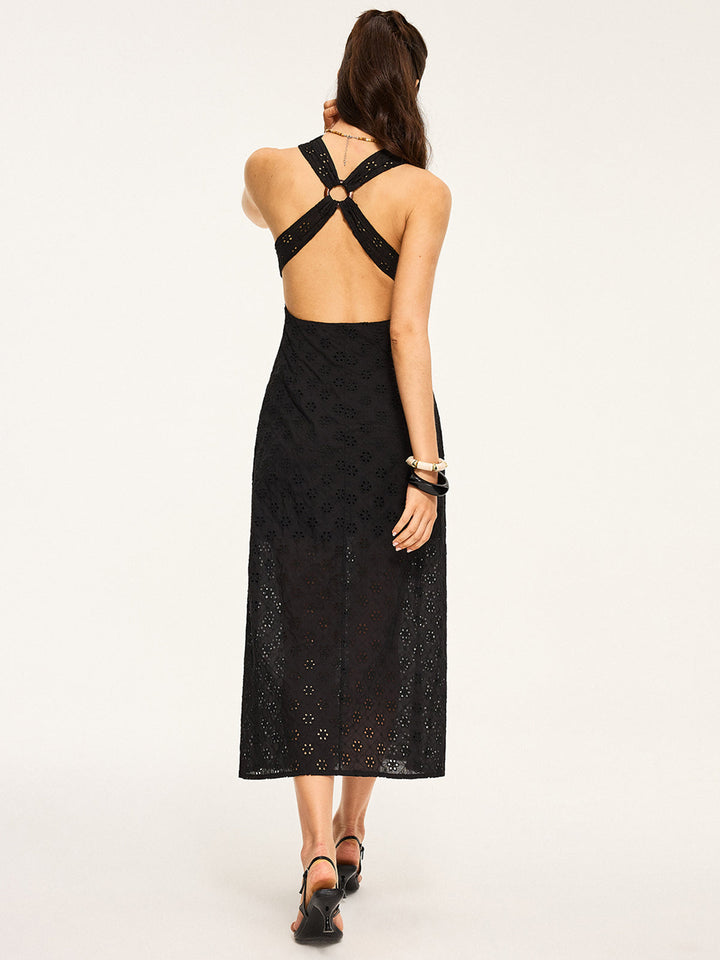 Yarı Şeffaf Sırtı Açık Çapraz Midi Elbise