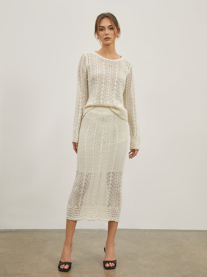 Gözlü Kablo Örgü İki Parça Etek Takımı