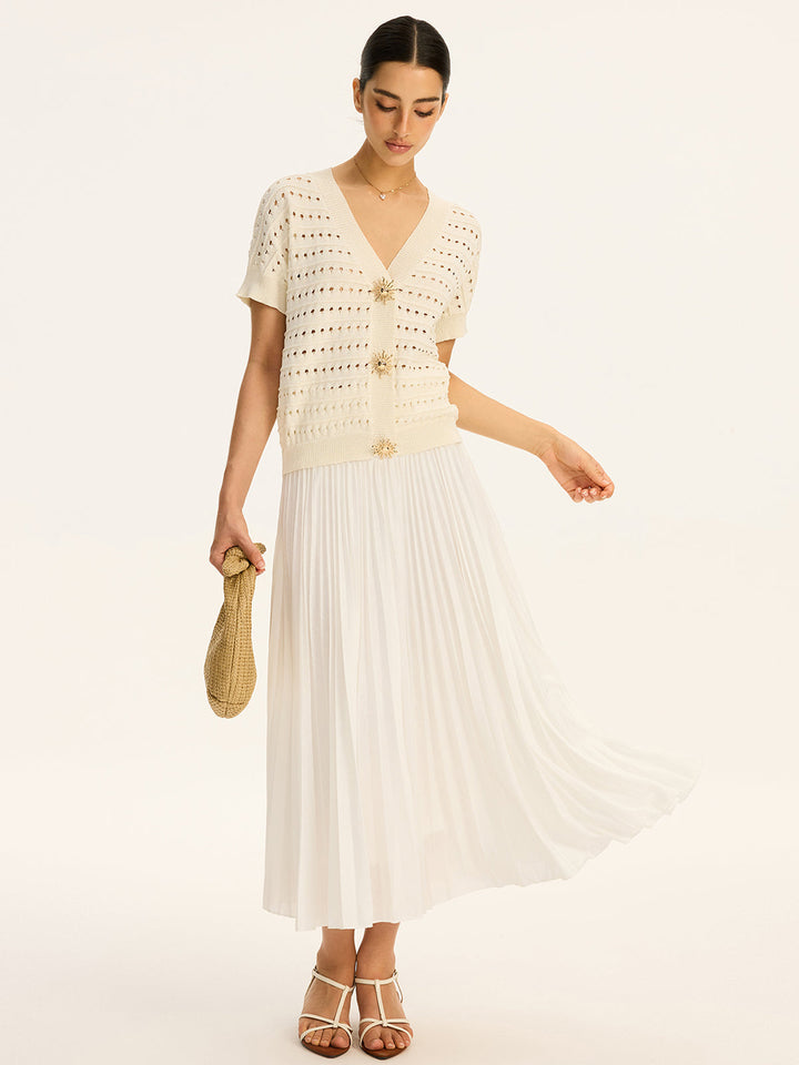 Gözlü Örgü Metal Düğmeli V Yaka Hırka