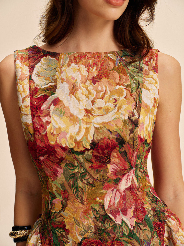 Çiçekli Sırtı Açık Kloş Elbise