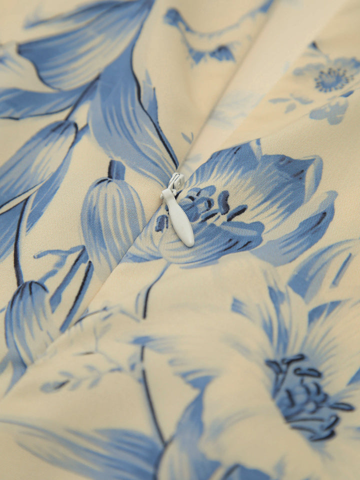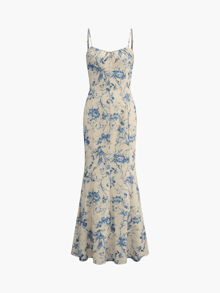 Çiçekli Sırtı Açık Bağcıklı Uzun Elbise