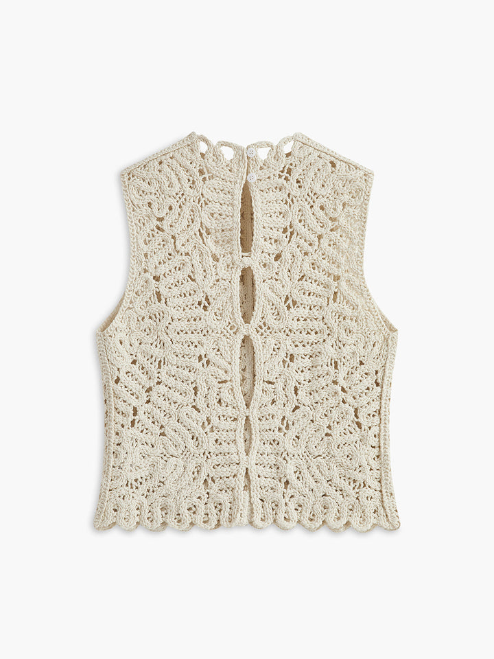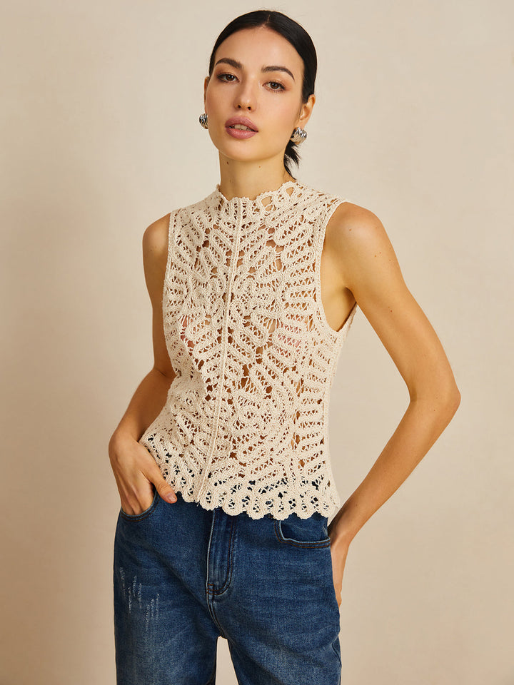 Çiçekli Tığ İşi Oymalı Kazak Yelek