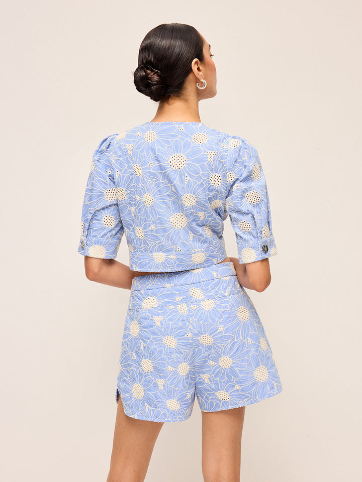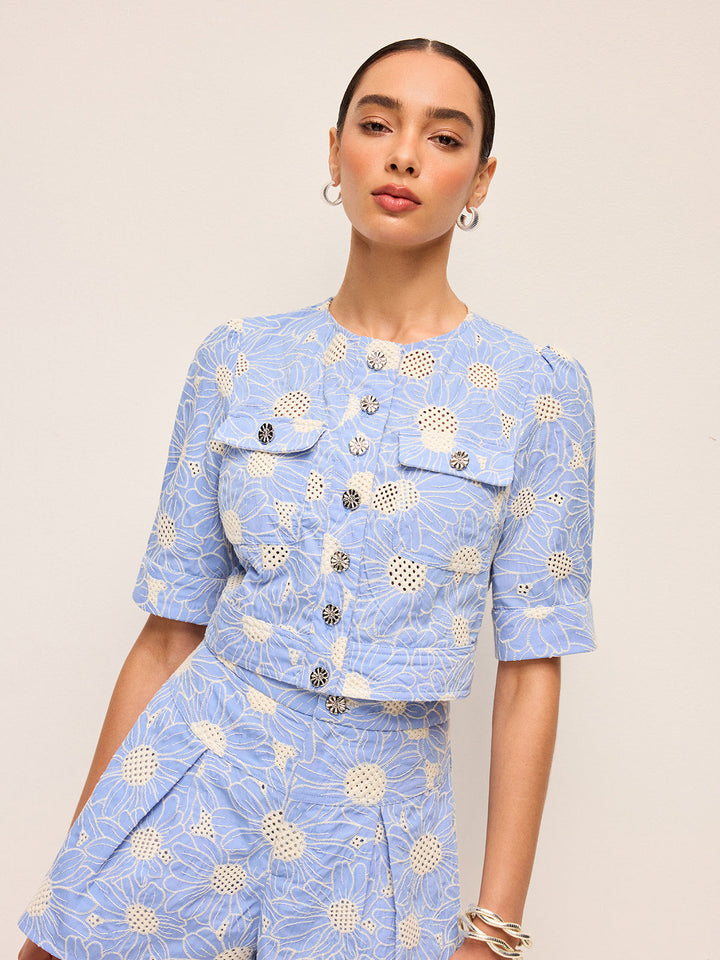 Çiçek İşlemeli Önü Düğmeli Kısa Üst