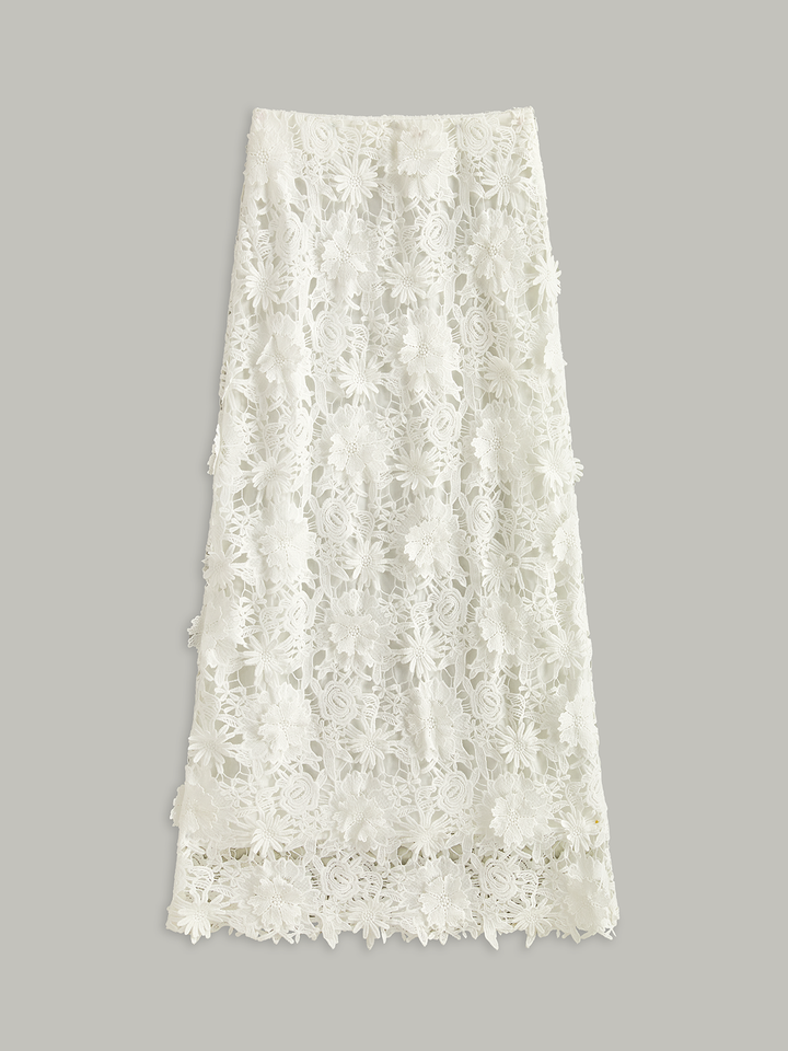 Çiçek İşlemeli Yarı Şeffaf Dantel Etek