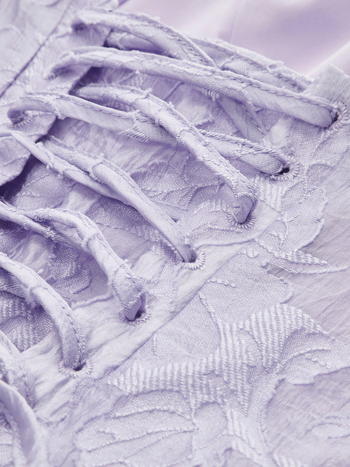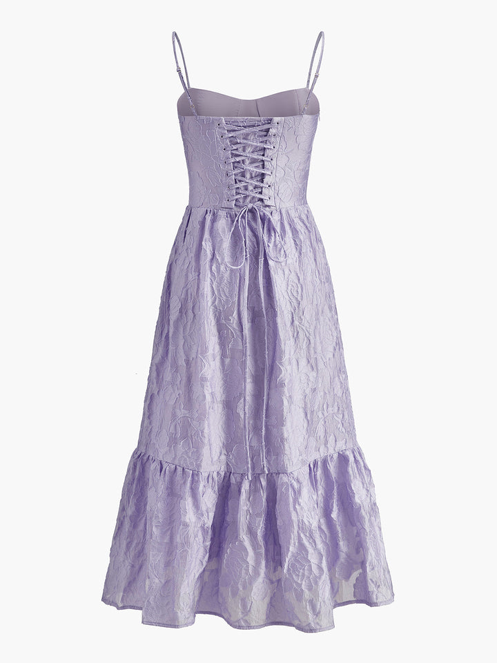 Çiçekli Jakarlı Bağcıklı Elbise
