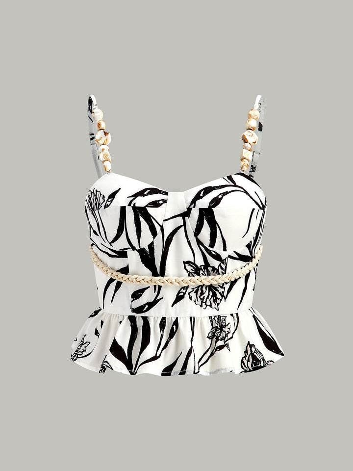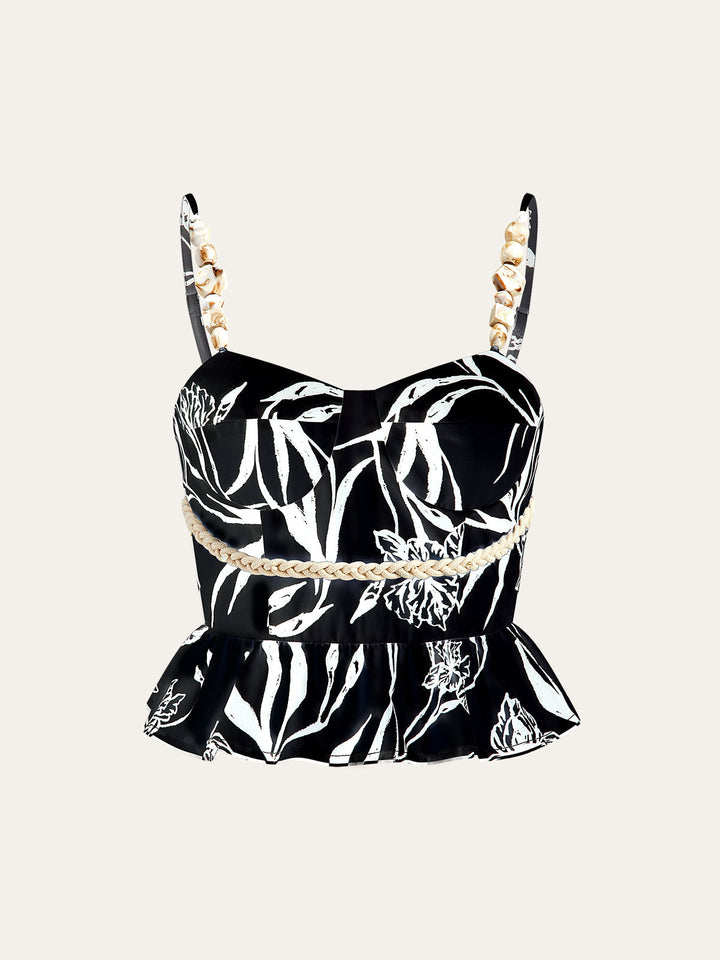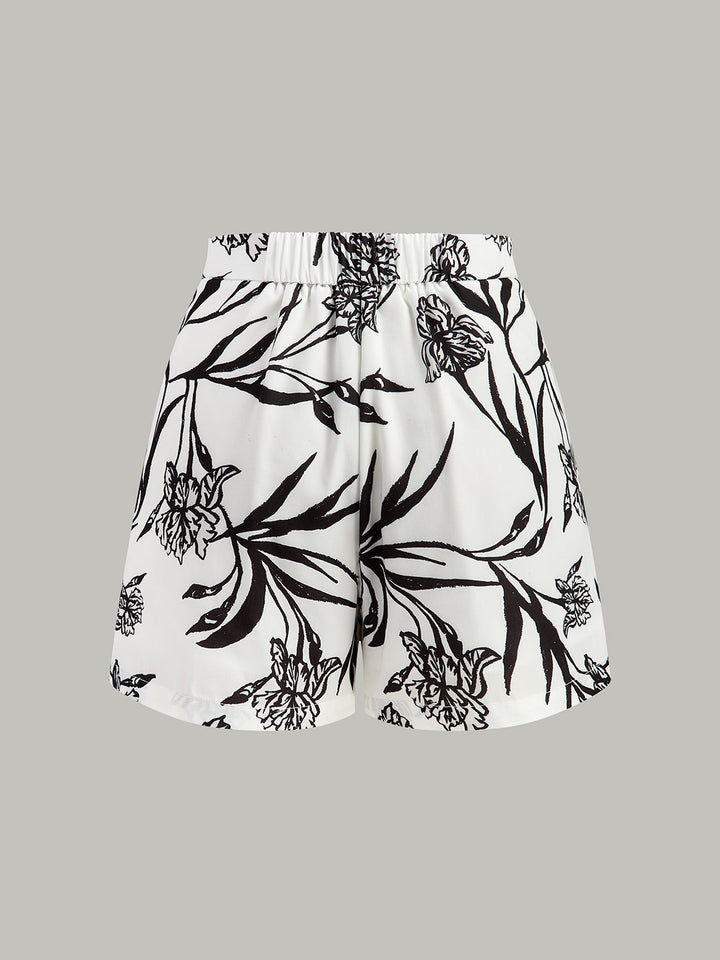 Çiçek Desenli Peplum Üst Ve Şort Takımı
