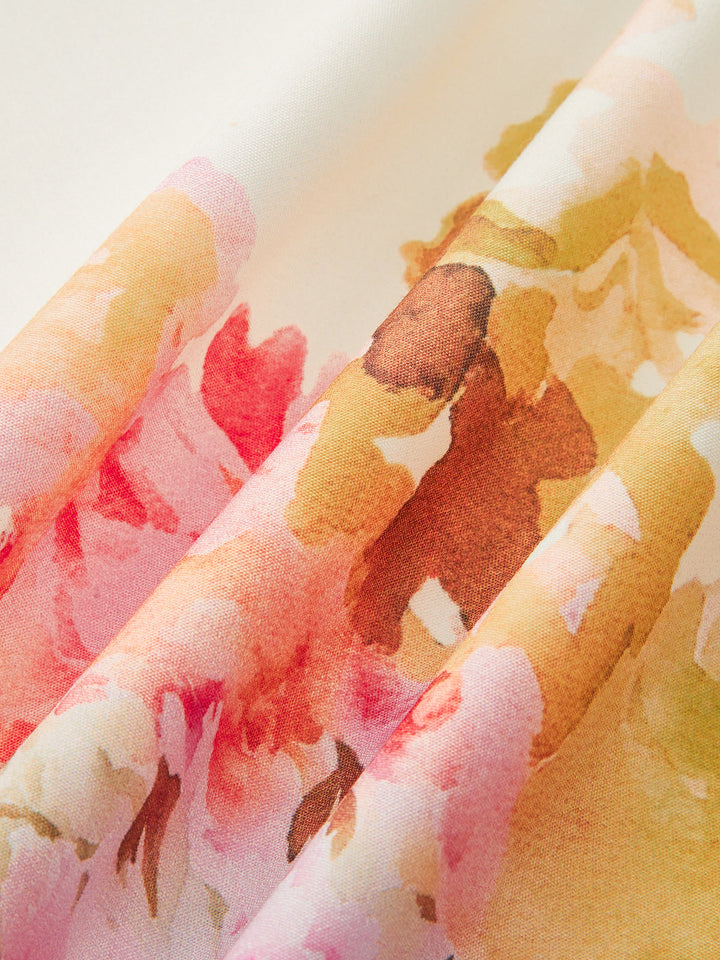 Çiçek Desenli Pileli Gömlek Elbise Ve Kemer