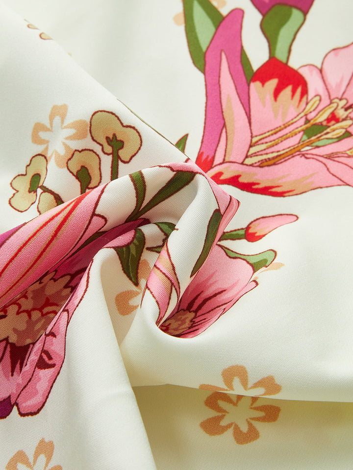 Çiçek Desenli V Yakalı Bağcıklı Body