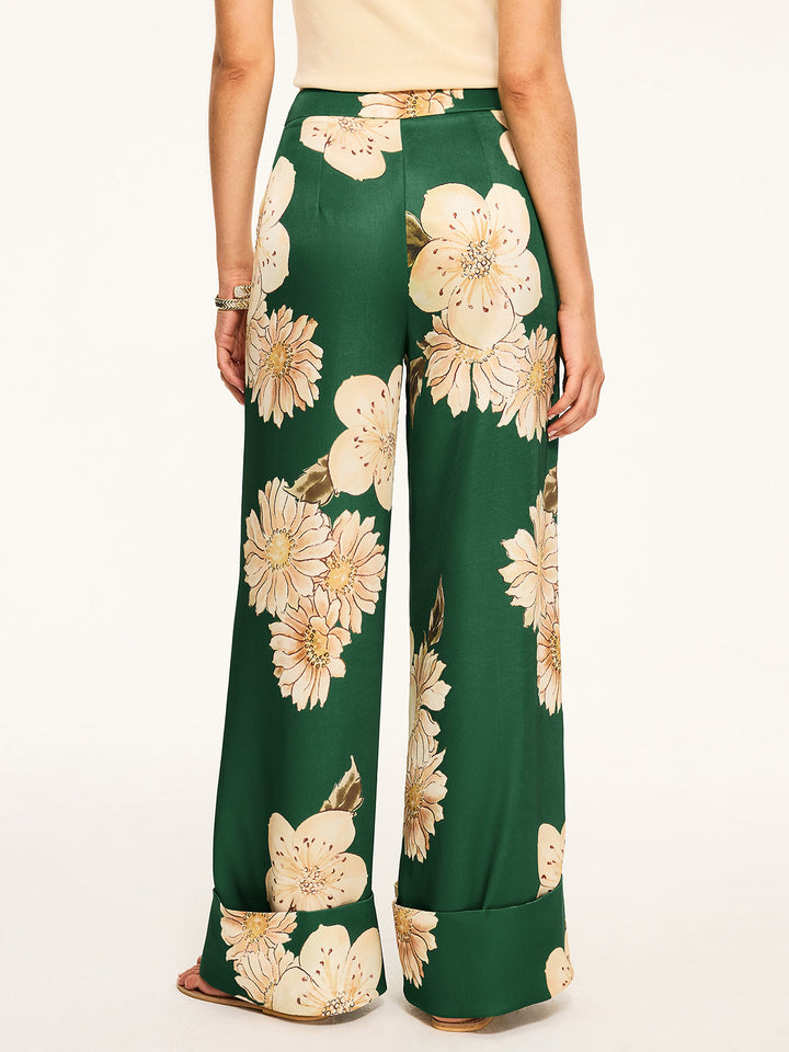 Çiçek Desenli Geniş Paça Pantolon