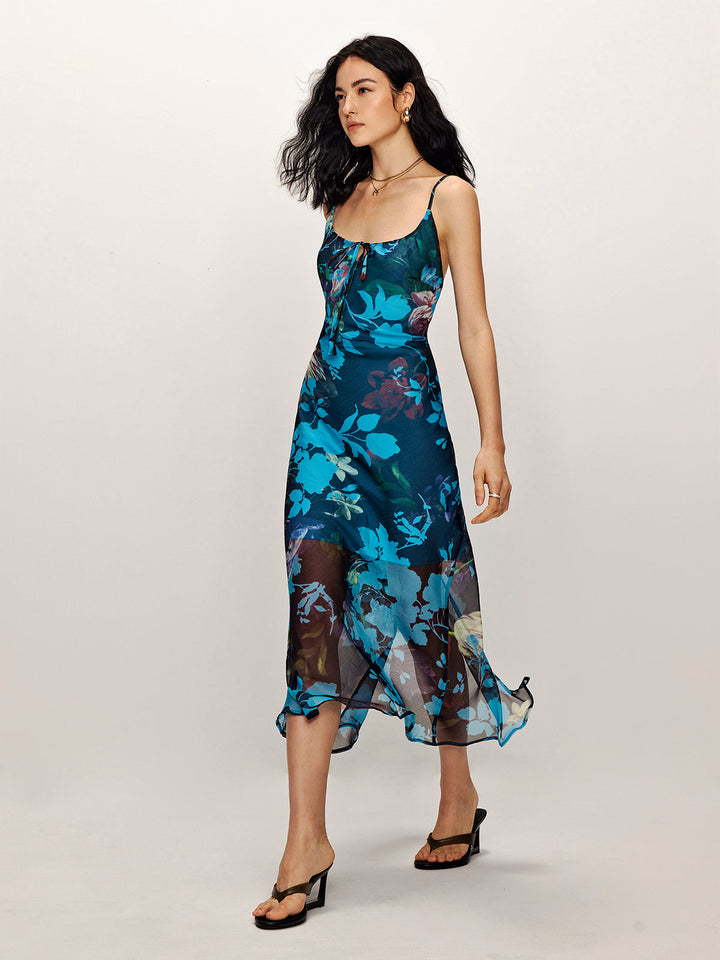 Çiçek Baskılı Sırtı Açık Atlet Elbise
