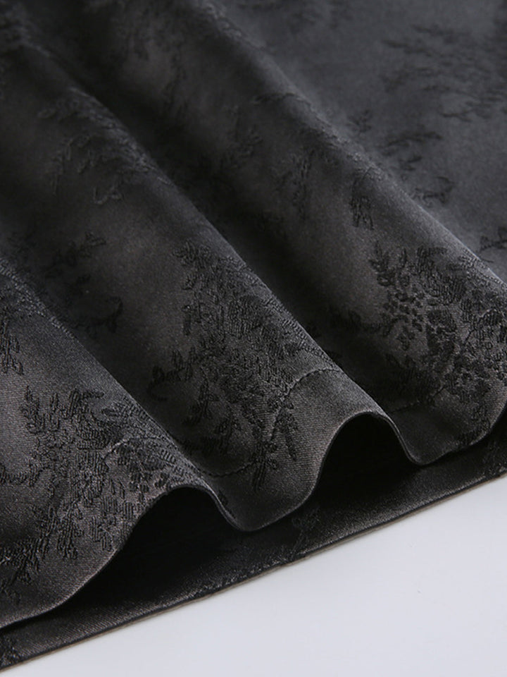 Çiçekli Saten Yırtmaçlı Midi Etek