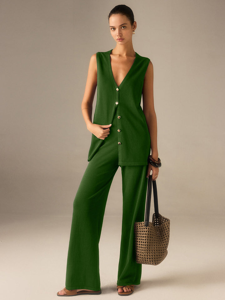 Altın Düğmeli Örgü Yelek Pantolon Takımı