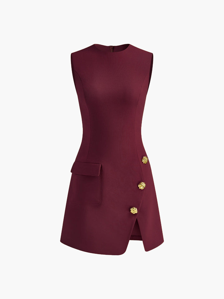 Altın Gül Düğmeli Cepli Bölünmüş Elbise
