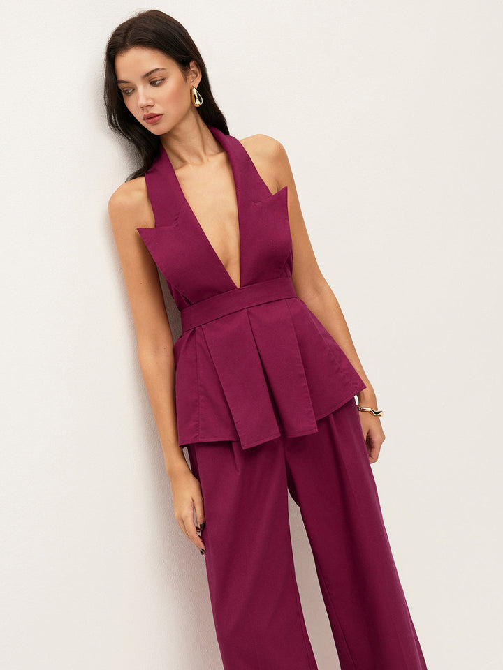 Halter Yaka Kemerli Cepli Pantolon Takımı