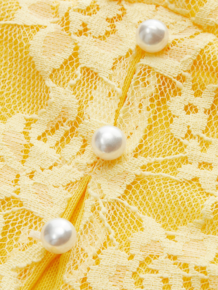 Boyundan Bağlamalı Çiçekli Dantel Elbise