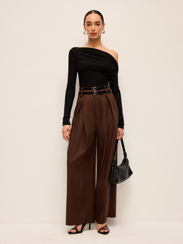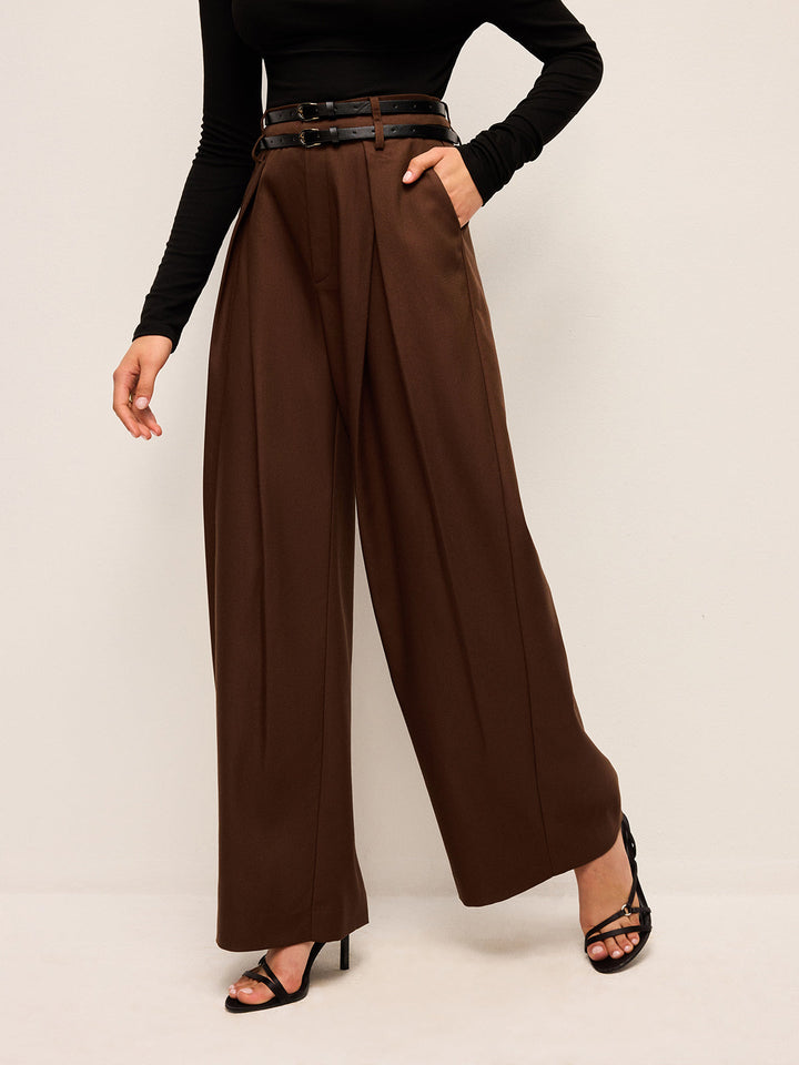 Çift Kemerli Yüksek Bel Geniş Paça Pantolon