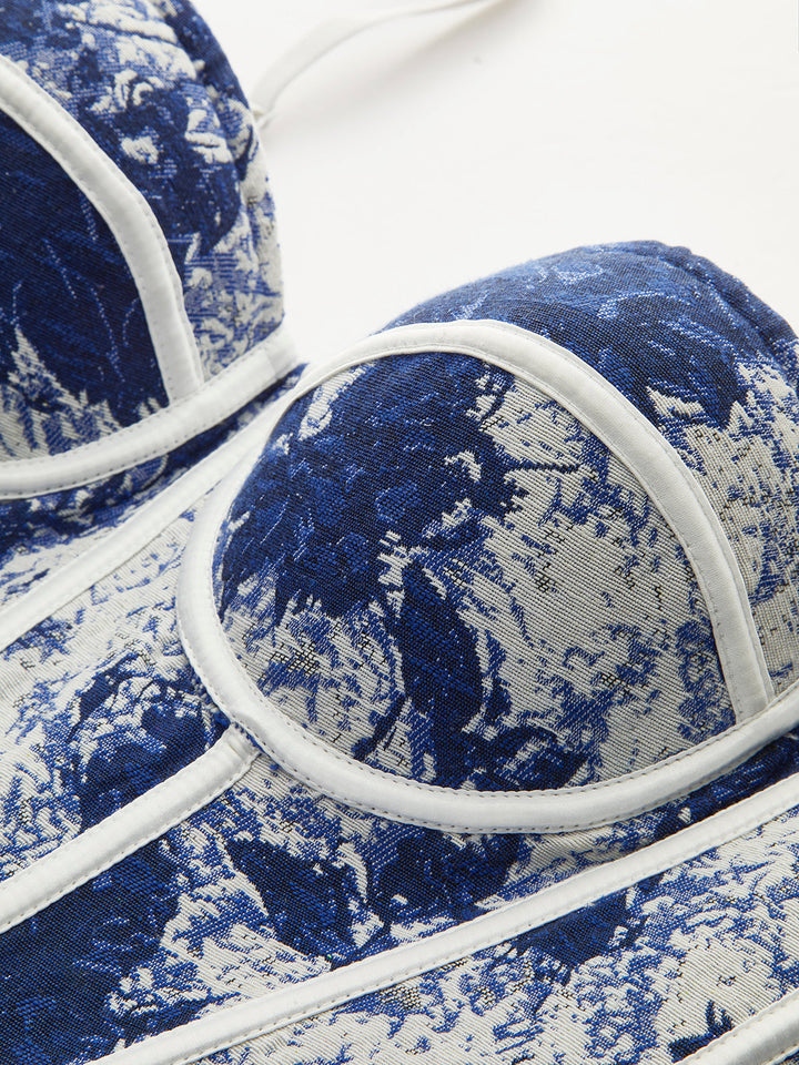 Mürekkep Baskılı Fermuarlı Korse Üst