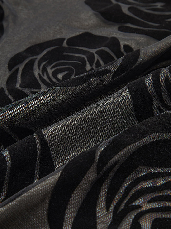 Jakarlı Çiçekli Asimetrik Uzun Elbise