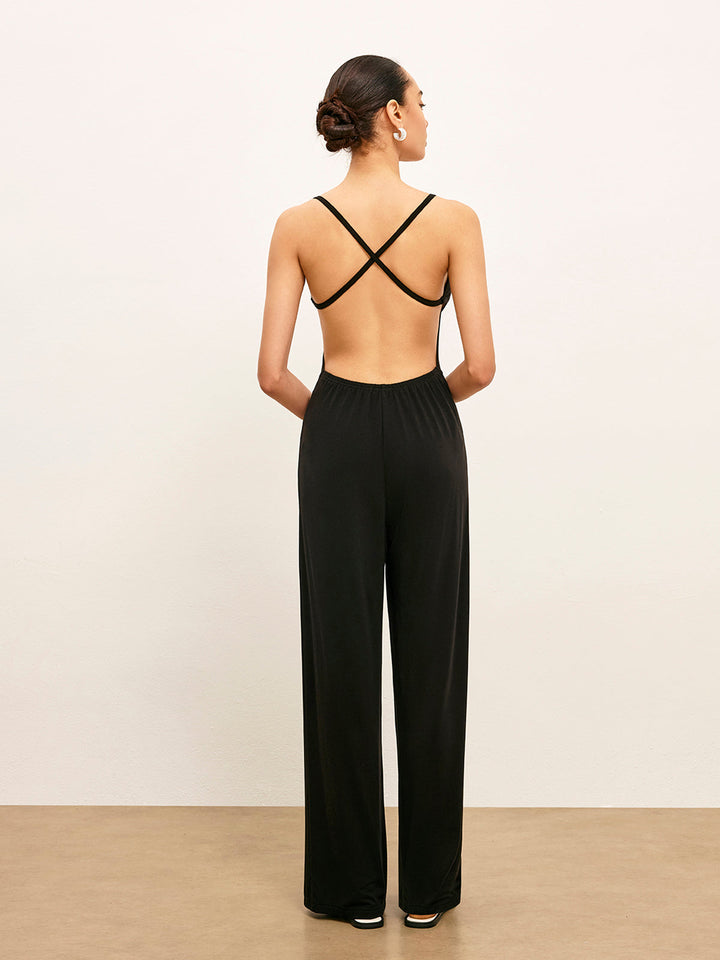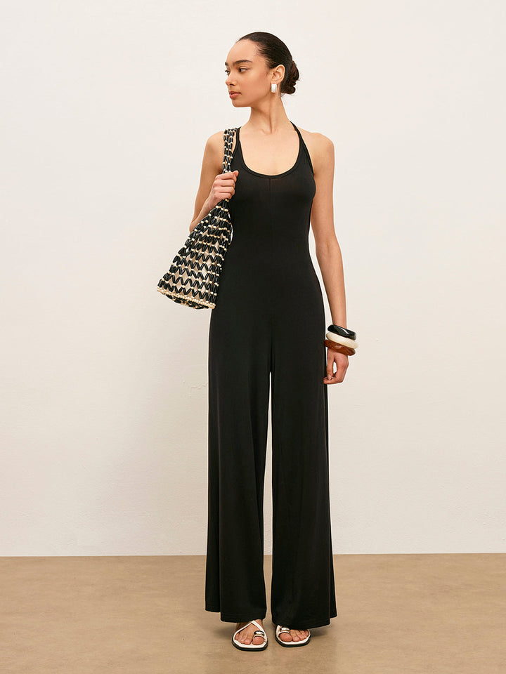 Örgü Sırtı Açık Kolsuz Yuvarlak Yaka Tulum
