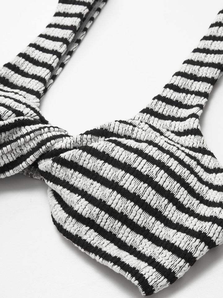 Düğümlü Çizgili Örgü Bikini Takımı