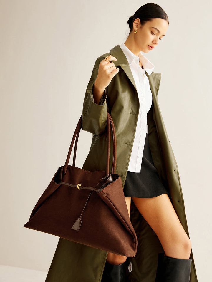 Büyük Kapasiteli Süet Omuz Çantası