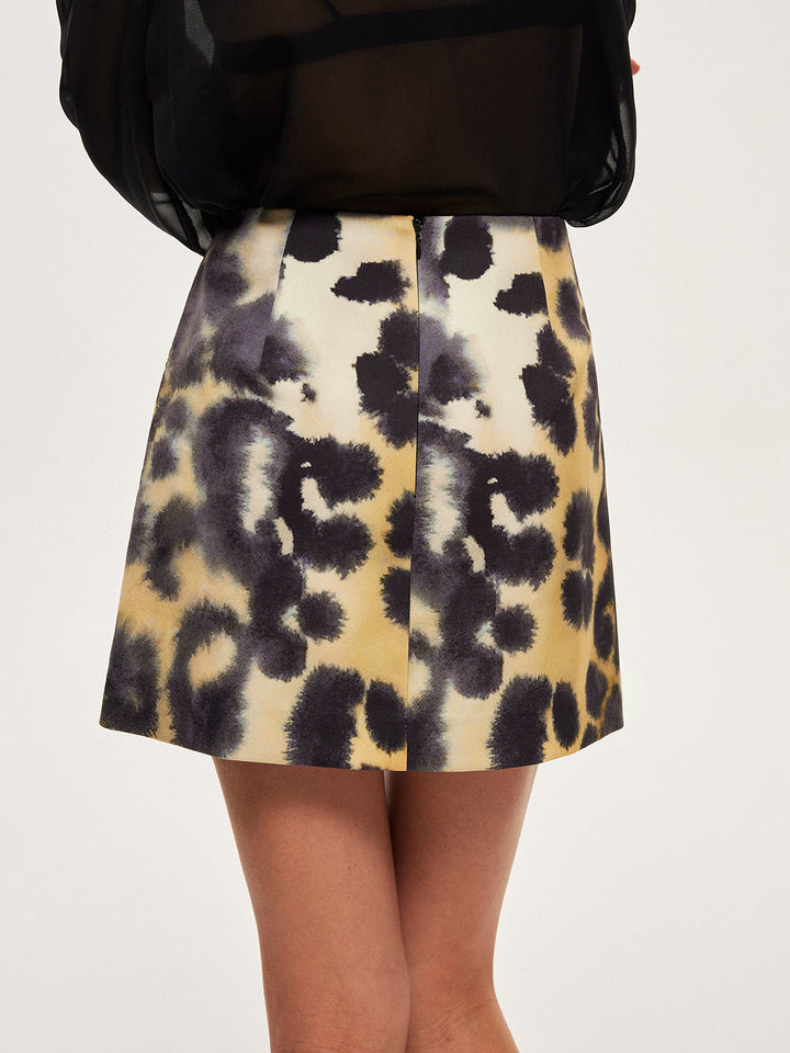 Leopar Desenli Yüksek Bel Fermuarlı Etek