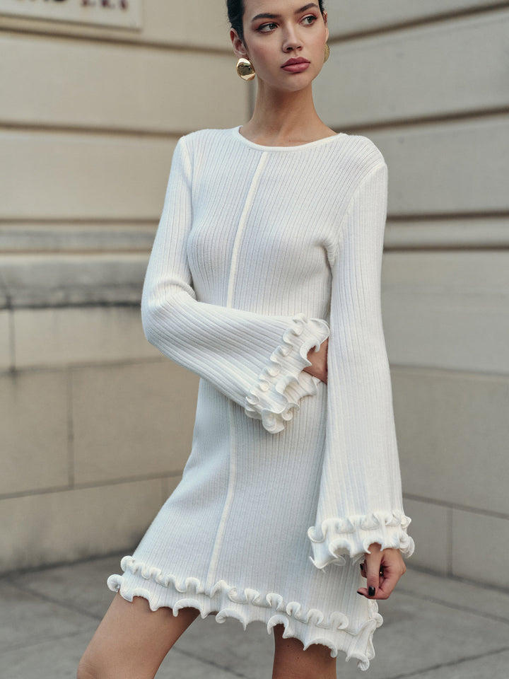Marul Kenarlı Çan Kollu Kazak Elbise