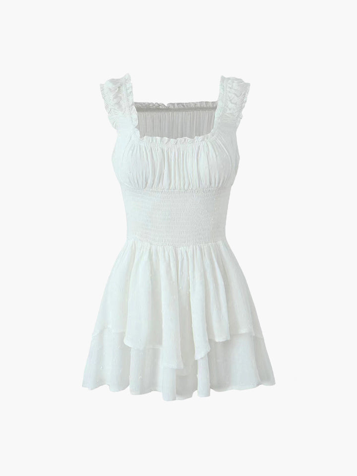 Marul Kenarlı Büzgülü Bel Katmanlı Kısa Elbise