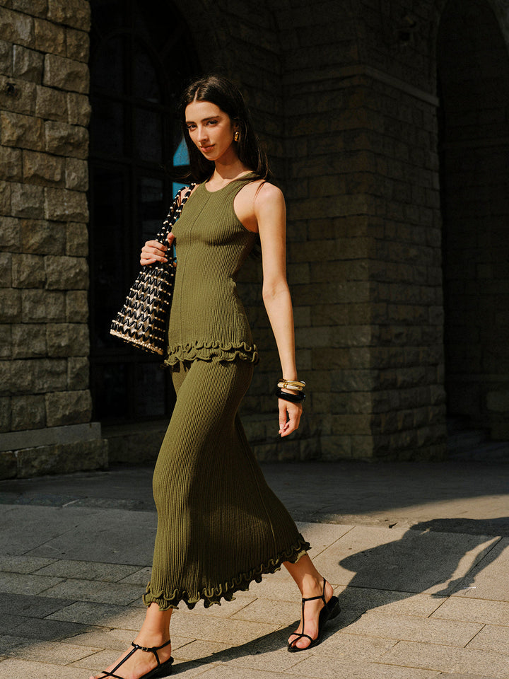Marul Kenarlı Kolsuz Örgü Etek Takımı