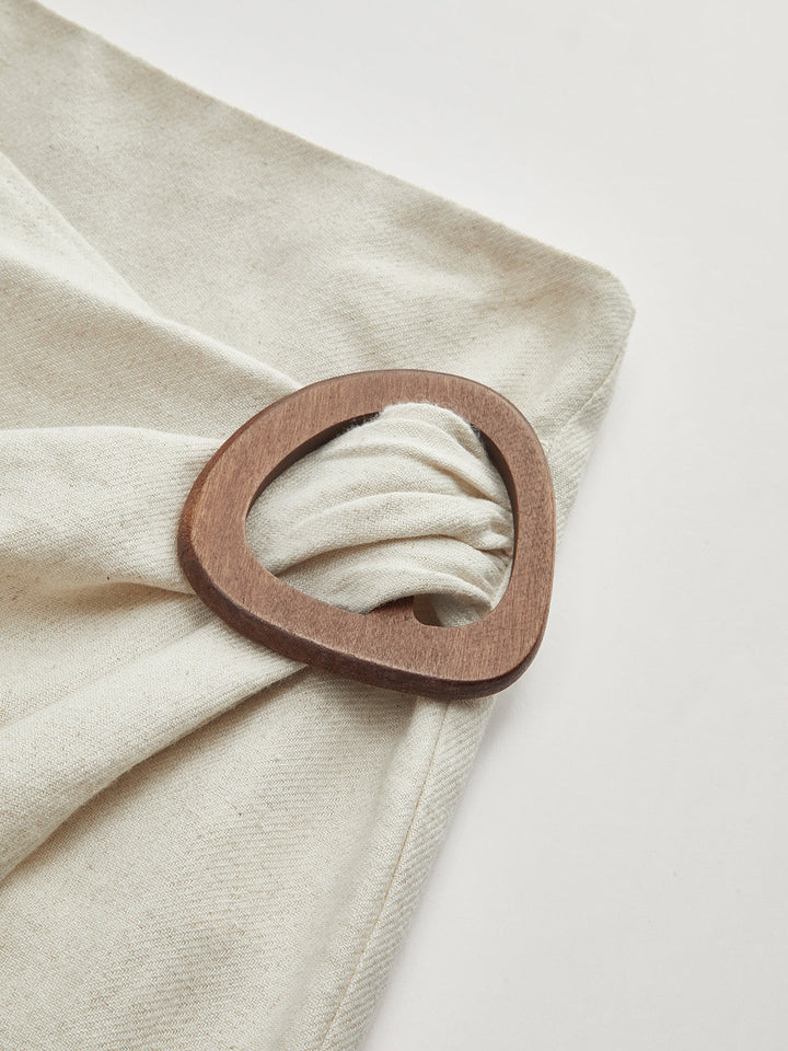 Ahşap Tokalı Keten Karışımlı Midi Etek