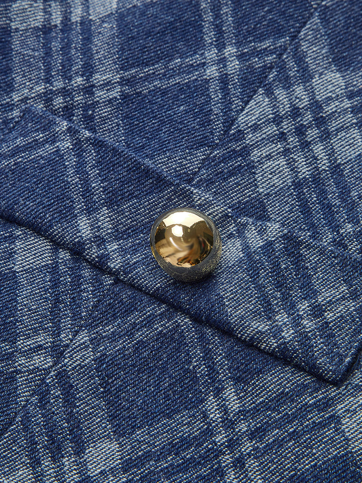 Metal Düğmeli Yuvarlak Yakalı Dekor Cepli Kot Elbise