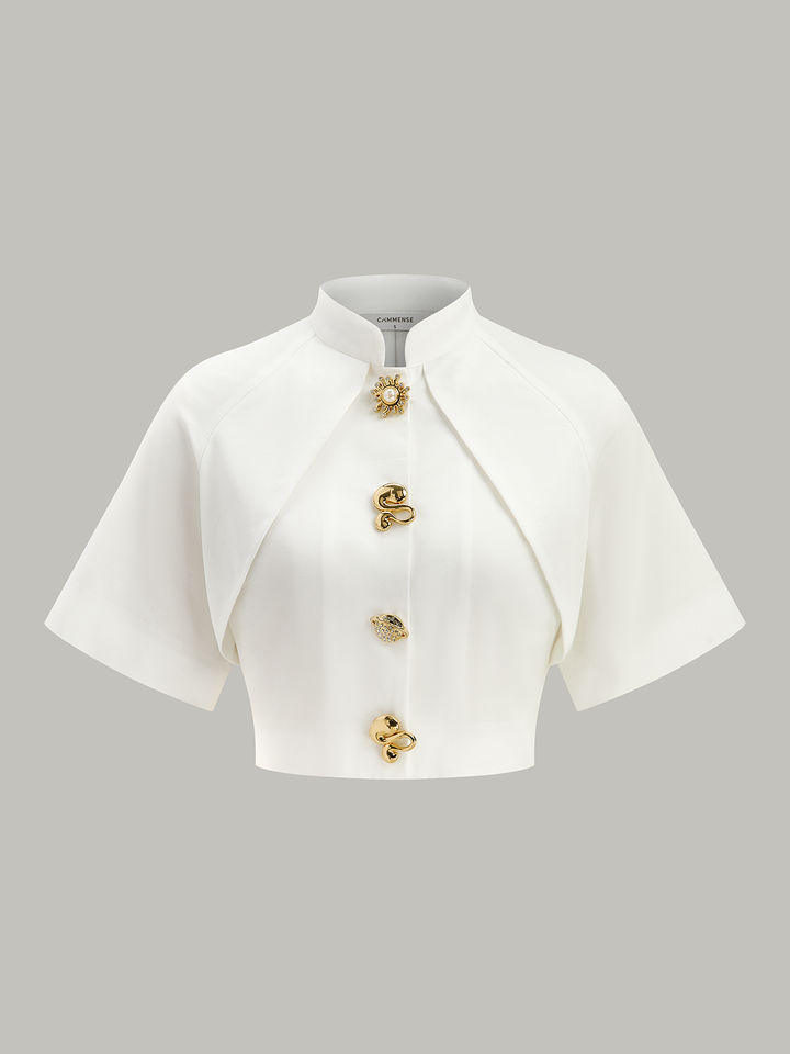Metal Dekorlu Kırpılmış Bluz