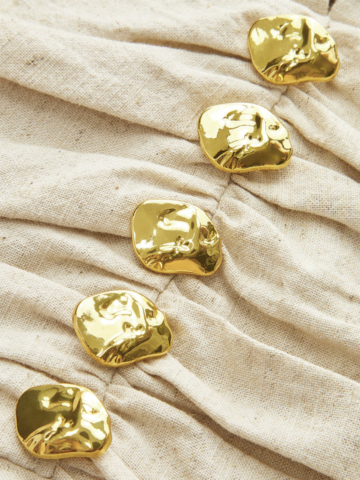 Metal Dekorlu Büzgülü Midi Elbise