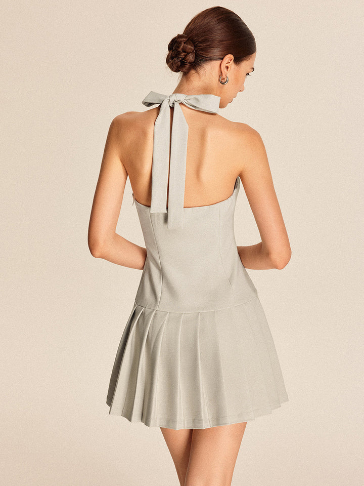 Metal Bağcıklı Fermuarlı Pileli Kısa Elbise