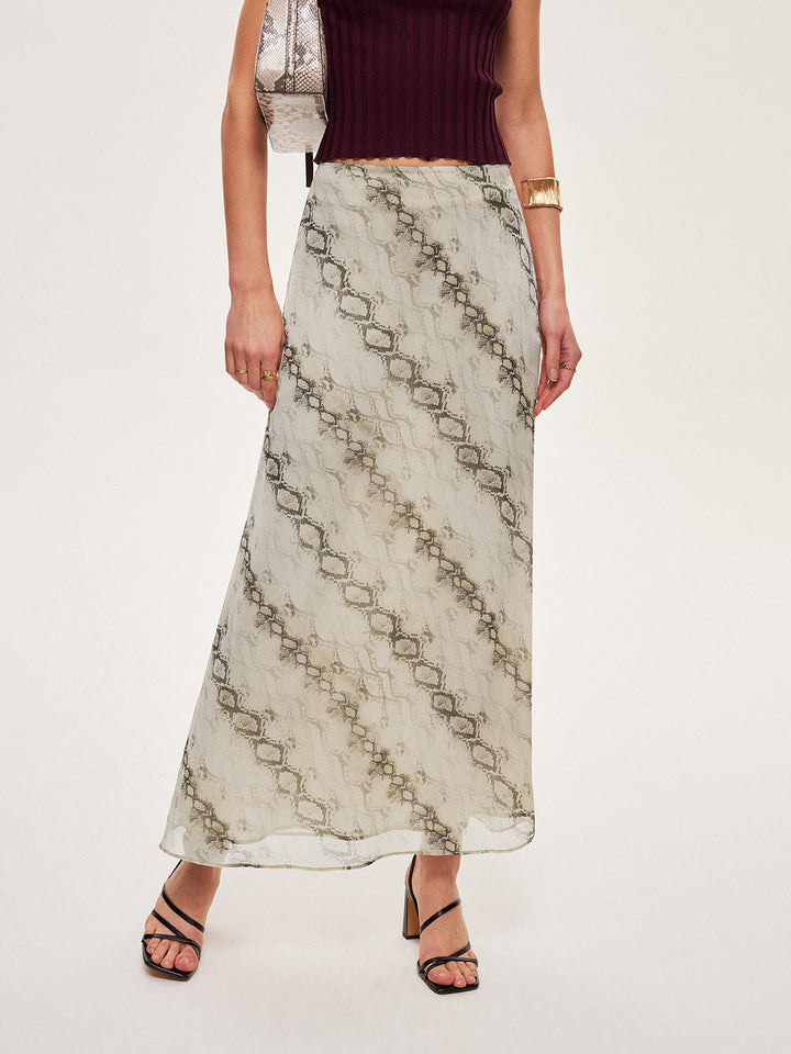 Orta Bel Baskılı Uçuşan Etek