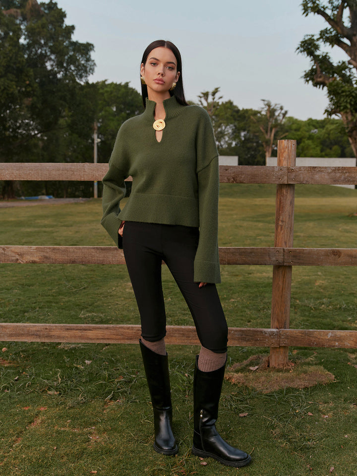 Balıkçı Yaka Metal Detaylı Kısa Kazak