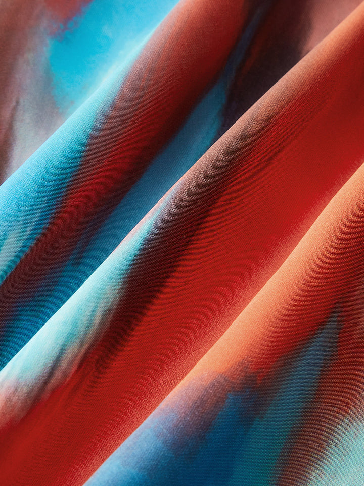 Çok Renkli Asimetrik Yaka Sırtı Açık Uzun Elbise
