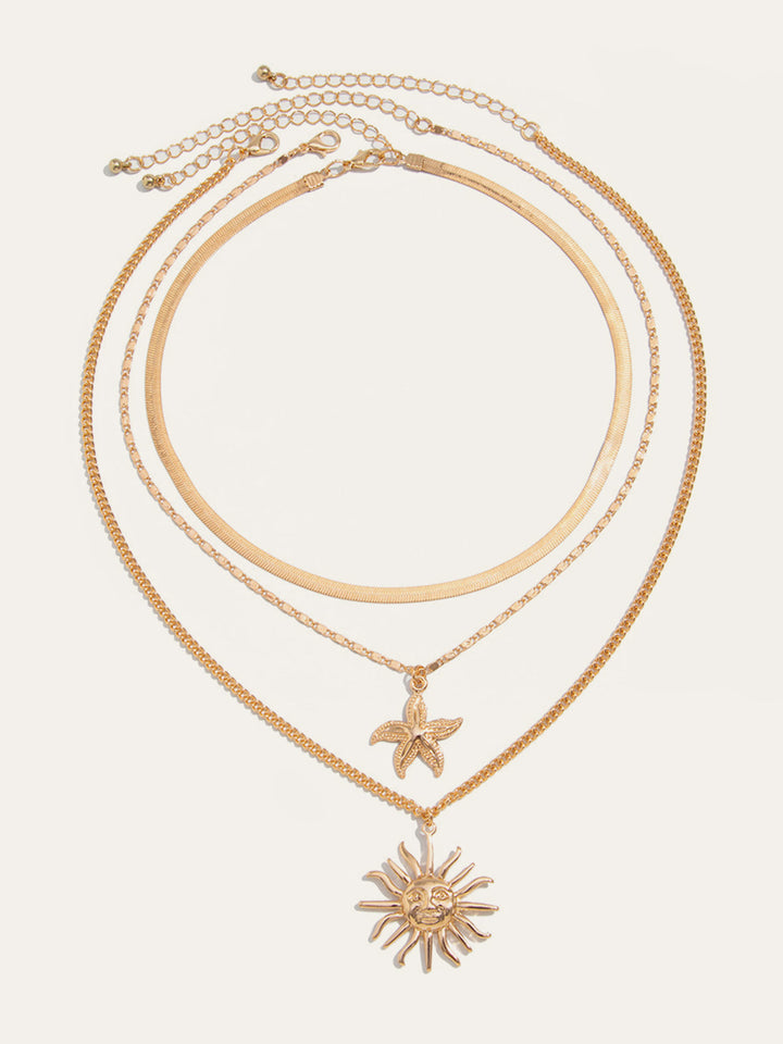 Çok Katmanlı Altın Güneş Ve Deniz Yıldızı Kolye Seti
