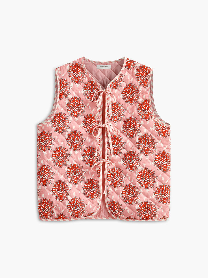 Nuboheme Baskılı Önden Bağlamalı Yelek