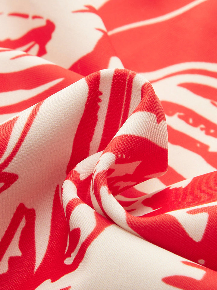Tek Omuzlu Tropikal Baskılı Bikini Takımı
