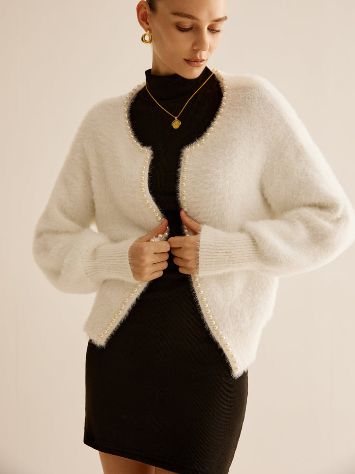 Büyük Boy İnci Kenarlı Tüylü Hırka