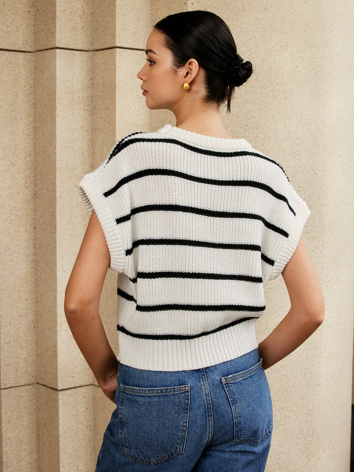 Büyük Boy Çizgili Kısa Kollu Kazak