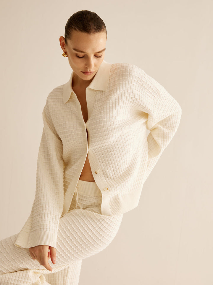 Ekose Düğmeli Yaka Hırka