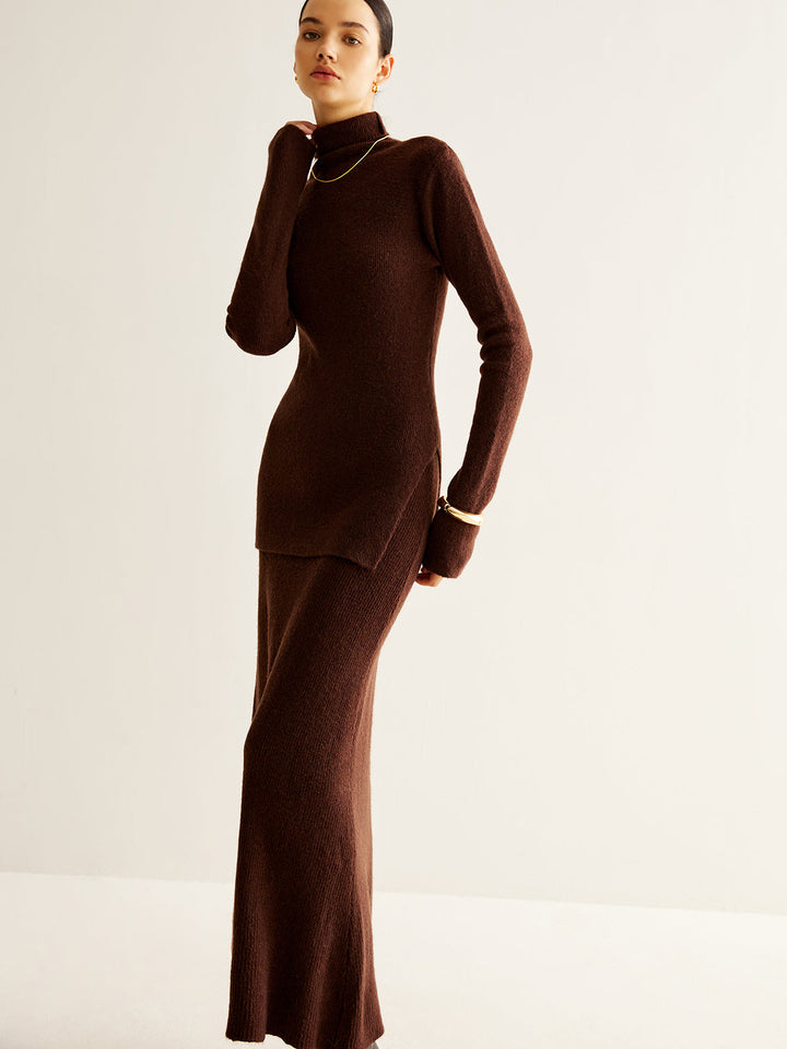 Düz Balıkçı Yaka Kaburgalı Yumuşak Etek Takımı