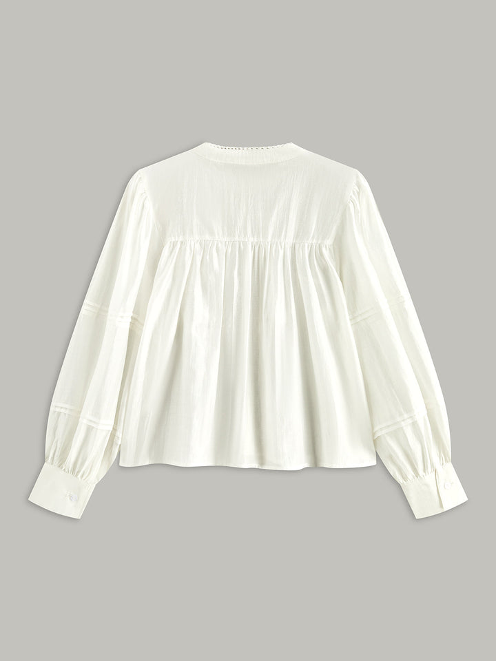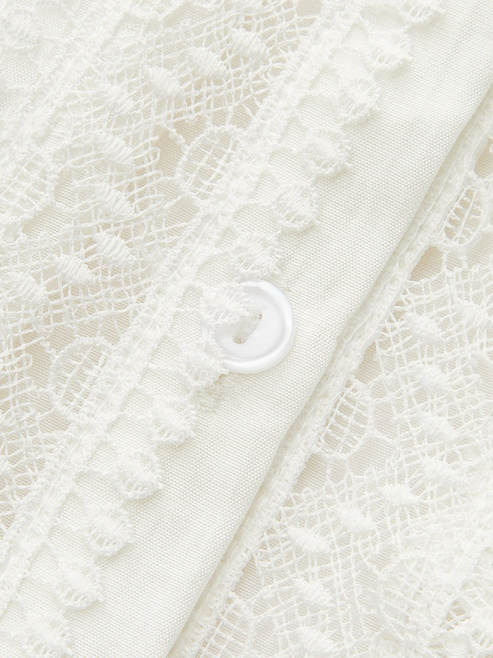 Pileli Dantel Kenarlı Düğmeli Bluz